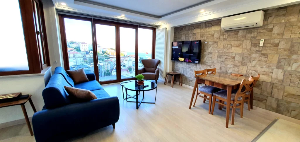 Magnificent Bosphorus views from a bright, 4th-floor retreat. Enjoy a fully equipped kitchen, modern comforts, and fast WiFi for up to 3 guests.