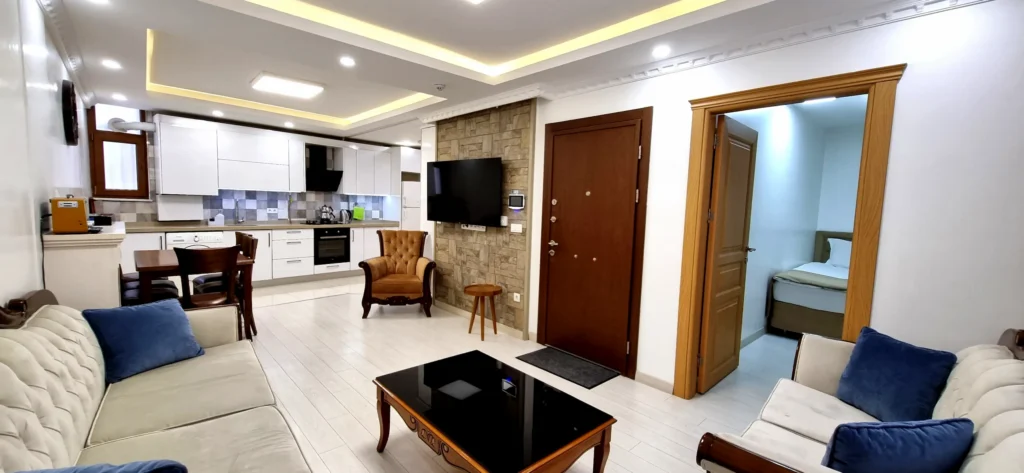 Exceptional 115-square-meter living space in an elegant, 1st-floor retreat. Enjoy a large living room, kitchen, modern comforts, and ultra-fast WiFi for up to 6 guests.