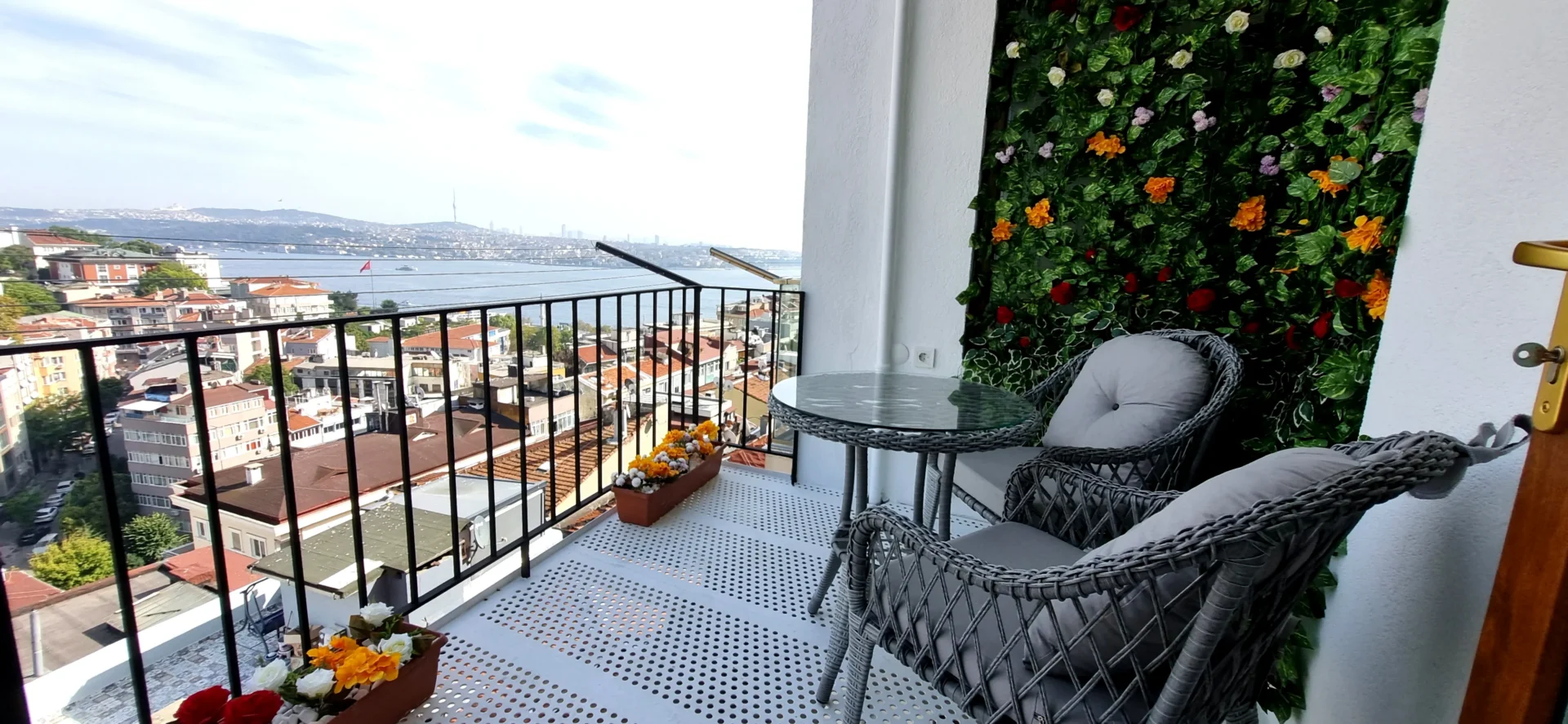 Elevate your Istanbul stay in this stunning top-floor apartment featuring a private balcony with unmatched, panoramic Bosphorus views. Enjoy ultra-fast WiFi, a fully equipped kitchen, and modern comforts in this premium suite for up to 3 guests.